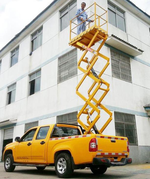 車載式高空作業平臺是由升降臺和汽車配套改裝而成的高空作業設備。升降臺利用車輛的直流電或自帶直流動力驅動升降。